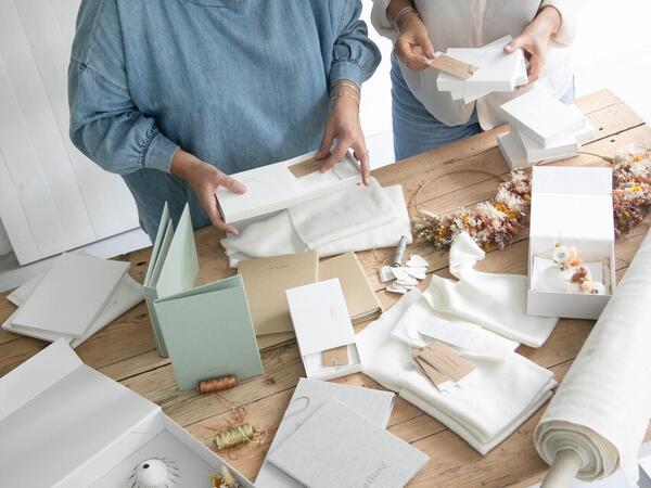 “Wij bieden diverse troostproducten aan, van aandenkens tot op maat gemaakt rouwdrukwerk”, vertelt Annemie. Valérie vult aan: “Onze doelgroep is breed, gaande van mensen die zelf hun afscheid plannen, nabestaanden tot samenwerkingen met begrafenisondernemers, rouwcoaches, concept stores en bedrijven. Het doel is altijd om met onze producten verdriet te verzachten vertelt Annemie: “Het warme design en de zachte kleuren zijn hierbij erg belangrijk. Zo onderscheiden we ons van het klassieke, vaak sombere aanbod aan troostgeschenken.”
