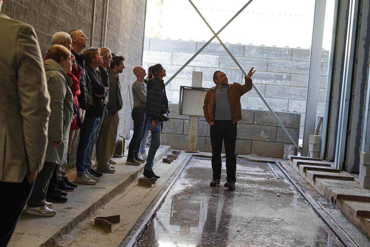 Bjorn Gubbels, de CEO van Carbstone, wist iedereen te boeien tijdens de rondleiding waarbij nog maar eens duidelijk werd hoe trots we in Maasmechelen mogen zijn op onze ondernemers! Het werd een bijzonder unieke uitwisseling over innovatie, circulair bouwen en lokaal ondernemerschap.