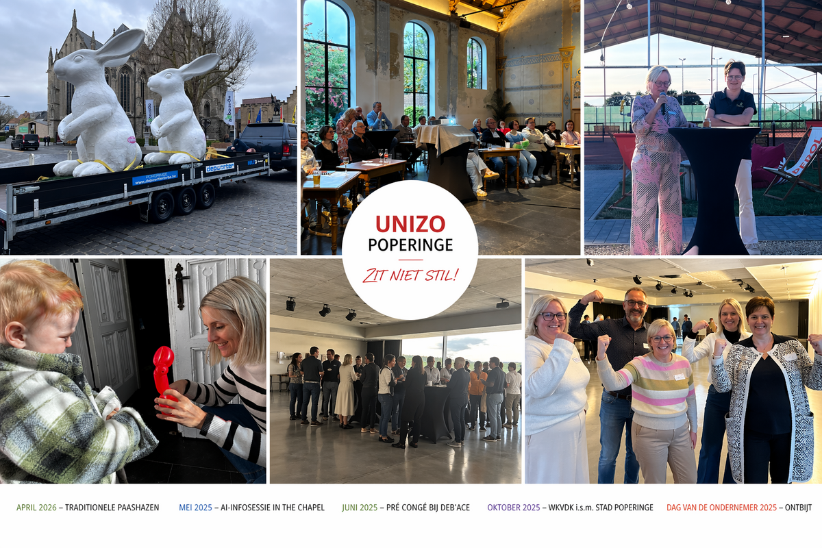 Bij UNIZO Poperinge geloven we dat ondernemen sterker wordt door verbinding. En dat bewijzen we, maand na maand, met initiatieven die inspireren, verbinden en ondersteunen.