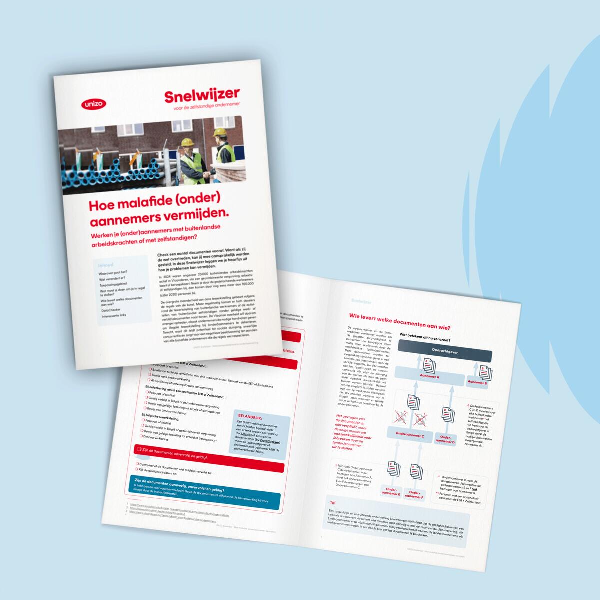 Check een aantal documenten vooraf. Want als zij de wet overtreden, kan jij mee aansprakelijk worden gesteld. In deze Snelwijzer leggen we je haarfijn uit hoe je problemen kan vermijden.